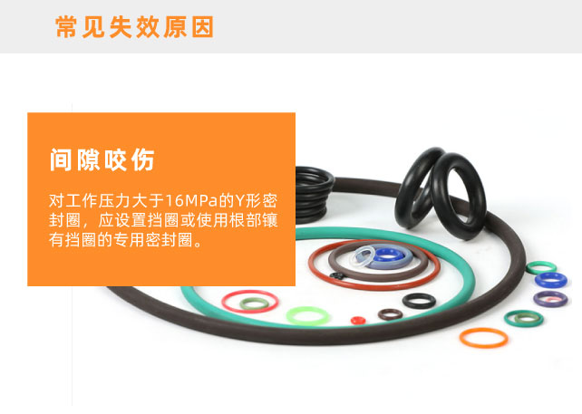 Y形密封圈的間隙咬傷現(xiàn)象與原因與O形圈的類似,發(fā)生在根部。同樣,解決措施是:根據(jù)工作壓力限制密封間隙、正確選用Y形圈材料。對工作壓力大于16MPa的Y形密封圈,應(yīng)設(shè)置擋圈或使用根部鑲有擋圈的專用密封圈。擋圈通常使用剛性較高的塑料材料,如聚四氟乙烯、聚酰胺等。